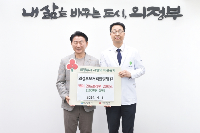 [뉴스서치] 의정부시는 4월 1일 의정부모커리한방병원이 저소득층을 위해 백미 200kg와 라면 20상자를 전달했다고 밝혔다.