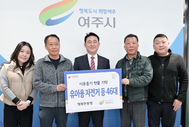 [뉴스서치] 행복한동행에서 지난 27일 여주시를 방문하여 관내 저소득 가구를 위한 이웃돕기 현물 유아용 자전거 46개를 기탁했다.