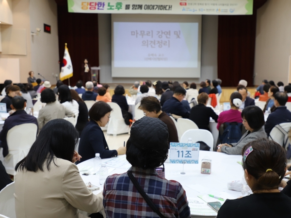 행사는 선배시민학회 유범상 학회장의 강연으로 문을 열었으며, 이후 참여 마당에서는 ‘당당한 노후를 위한 공동체의 준비, 정책 제안’을 주제로, 참여자 150명이 그룹별 진행자와 함께 토론하고 공동체의 의견을 발표하는 참여형 컨퍼런스 형태로 진행됐다.