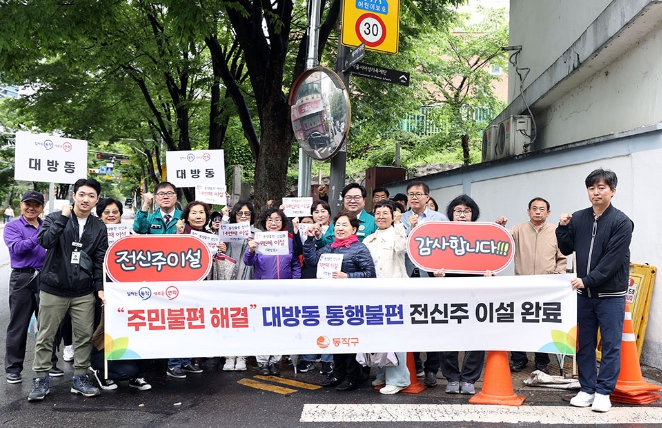 구는 지난해부터 올해까지 상도 4동, 사당동 등 관내 통학로 및 주택가 도로 가운데 있어 통행을 방해하는 전신주 14개를 이설해 보행 환경 및 도시미관을 개선해왔다.