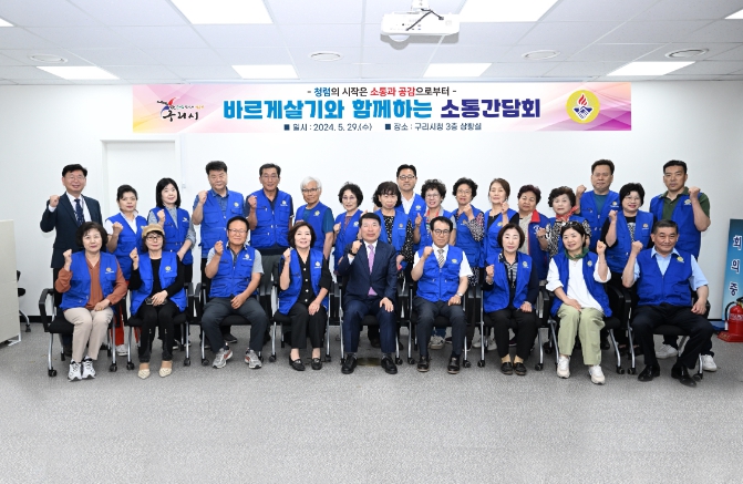 [뉴스서치] 구리시는 5월 29일 구리시청 3층 상황실에서 바르게살기운동 구리시협의회와 바르게살기 주요 사업과 시정 현안 사항에 대한 의견을 공유하기 위해 소통간담회를 개최했다.