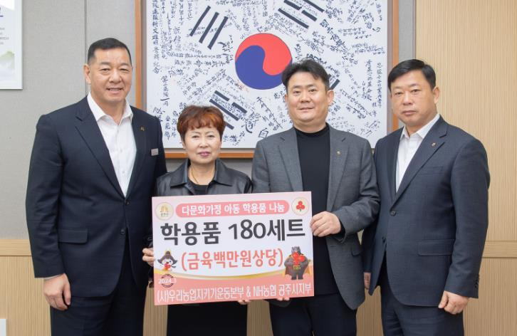 (사)우리농업지키기운동본부와 NH농협공주시지부는 이날 공주시청을 방문해 지역 다문화가정 아동들에게 전달해 달라며 600만원 상당의 학용품 세트 180개를 최원철 시장에게 기탁했다.