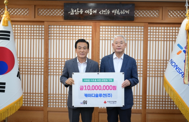 [뉴스서치] 논산시(시장 백성현)는 케이디솔루션(대표 윤희진)에서 7일 논산시청을 방문해 1천만원을 기탁했다고 전했다.