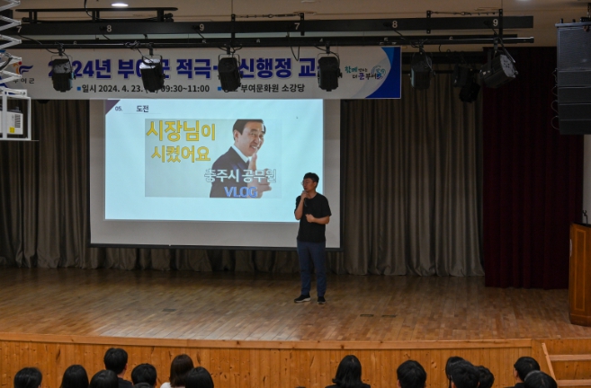 [뉴스서치] 부여군은 지난 23일 부여문화원 소강당에서 적극행정 및 혁신행정 마인드 함양을 위해 충주시 김선태주무관을 초청해 전직원 대상 교육을 실시했다.