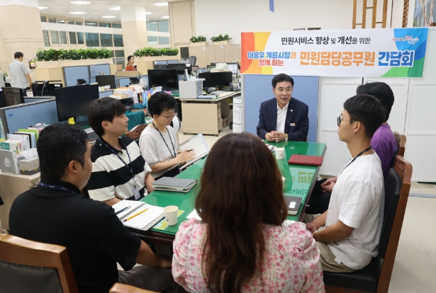이번 간담회는 대민 행정의 최일선에서 감정 노동을 하고 있는 민원 담당 공무원들의 애로사항을 청취하고 직원들의 사기를 진작하기 위해 마련됐다.