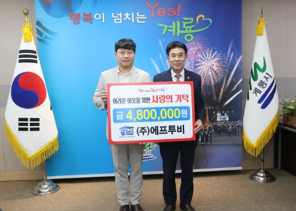 ▲ ㈜에프투비, 계룡시에 탈북민을 위한 현금 기탁 |
