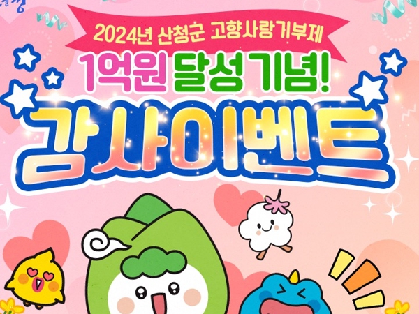 [뉴스서치] 산청군은 올해 고향사랑기부제 기부금 1억원 돌파를 기념해 다양한 이벤트를 마련했다고 3일 밝혔다.