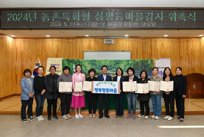 해당 교육 수료자를 대상으로 올해 2개월간 성인지감수성, 대상별 교육, 강의 시연 등 심화과정 운영을 통해 9명을 농촌특화형 성평등 마을강사로 위촉했다.