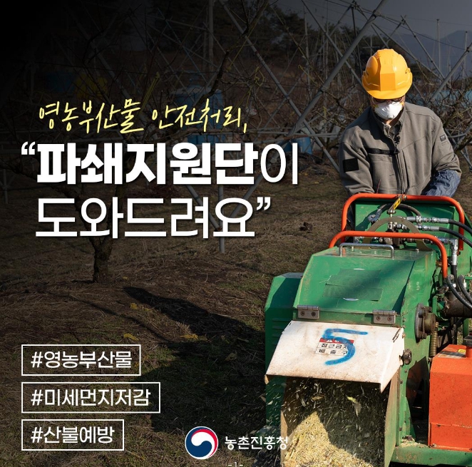 아울러, 영농부산물 파쇄지원단을 내달 14일까지 모집 중으로 자세한 내용은 작물환경팀으로 문의하거나 옥천군농업기술센터 홈페이지를 통해 확인할 수 있다.