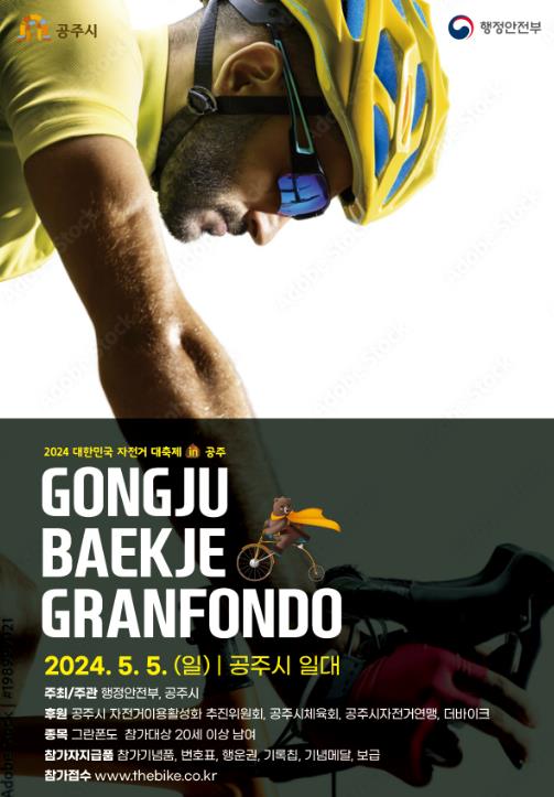한편, 행정안전부와 공주시는 지구온난화의 심각성에 따른 저탄소 자전거 타기 일상화를 위해 ‘2024 대한민국 자전거대축제 in 공주’ 행사를 오는 5월 4일부터 3일간 공주 금강신관공원 일원에서 개최한다.