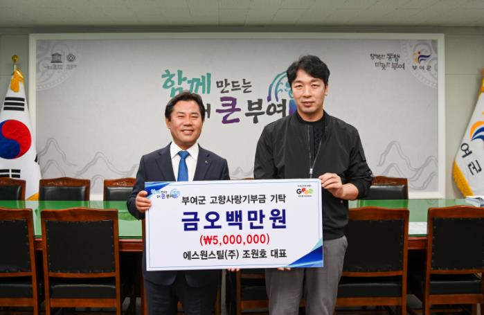 [뉴스서치] 에스원스틸(주) 조원호 대표가 지난 25일 부여군에 고향사랑기부금 500만 원을 기부하며 2년 연속 고향사랑기부에 참여했다. 금년 부여군 세번째 최고액 기부다.