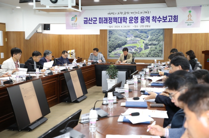 | ▲ 금산군은 지난 24일 금산군청 상황실에서 금산군 미래정책대학 운영 용역계약 착수보고회를 열고 총괄 계획 및 운영 주요 사항 등을 검토했다. |