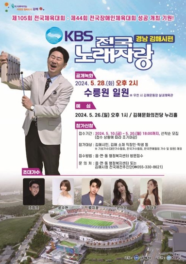 이번 KBS 전국노래자랑은 2024년 전국(장애인) 양대 체전의 성공 개최를 기원한다. 전국노래자랑이 김해를 찾은 것은 지난 2019년 이후 5년 만이다.