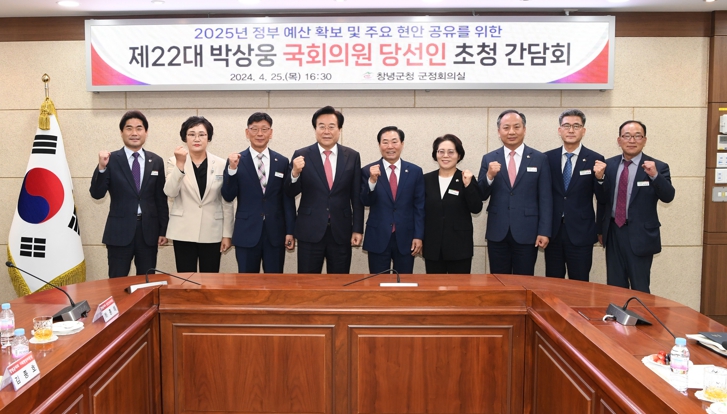 [뉴스서치] 창녕군은 지난 25일, 군청 군정회의실에서 제22대 박상웅 국회의원 당선인 초청 간담회를 가졌다고 밝혔다.