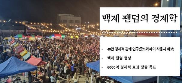 박정현 부여군수는 “부여군이 자체적으로 개발하고 전국에서 유일하게 결제수수료 제로, 공동체순환 지역화폐이자 인구당 발행량 충남 1위인 굿뜨래페이는 이번 충남에서 유일하게 행안부 공모 선정되어 그 가치가 증명됐다.”라며 “앞으로 40만 경제인구를 유치하여 백제 팬덤이 만들어 가는 6000억 지역 경제와 공동체의 지속 가능한 발전을 위한 토대를 마련할 것이다”라고 했다.
