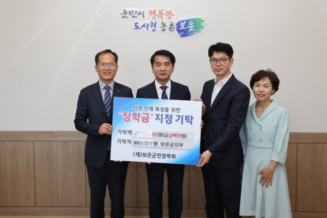 [뉴스서치] NH농협은행 보은군지부은 7일 보은군청을 방문해 지역 인재육성 장학금 300만원을 (재)보은군민장학회에 기탁했다.