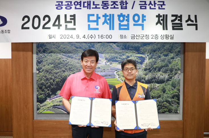 박범인 금산군수는 “노사 양측이 이해와 배려를 바탕으로 소통한 결과 큰 갈등 없이 단체교섭을 원만하게 마무리했다”며 “앞으로도 열린 소통을 통해 근로자의 근무 여건을 더욱 개선해 나가겠다”고 말했다.