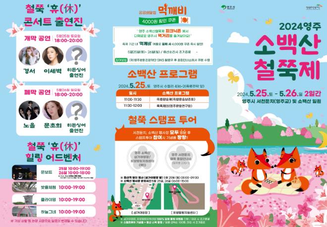 영주시가 주최하고 (재)영주문화관광재단이 주관하는 이번 축제는 ‘일상에 휴식을 더하다’를 주제로 25일부터 26일, 양일간 영주 소백산 및 서천둔치(영주교) 일원에서 개최된다.
