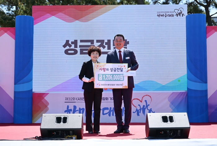 [뉴스서치] 지난 25일 (사)전국이통장연합회 거제시지회는 거제면스포츠파크에서 '제32회 거제시 이·통장연합회 한마음대회'를 개최하며 이·통장 전원이 한마음대회를 기념해 십시일반 모은 사랑의 성금 1,206,000원을 거제시에 전달했다.