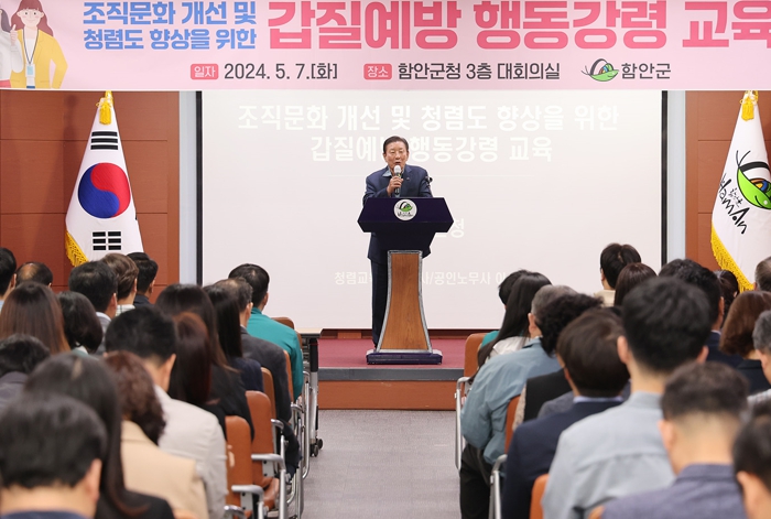 조근제 함안군수는 “이번 교육이 단순히 갑질 근절에 대한 교육으로 그치지 않고 어떻게 하면 더 건강하고 청렴한 조직문화를 만들어 갈 수 있을지 고민하고 실천에 옮기는 시발점이 되길 바란다”고 말했다.