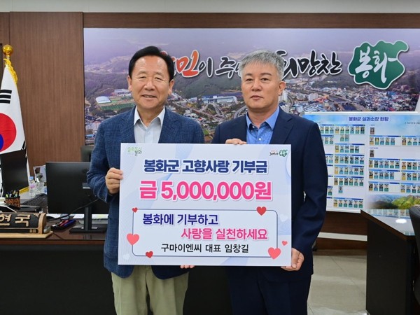 ▲ ㈜구마이엔씨 임창길 대표, 봉화군 고향사랑기부금 500만 원 기탁 |