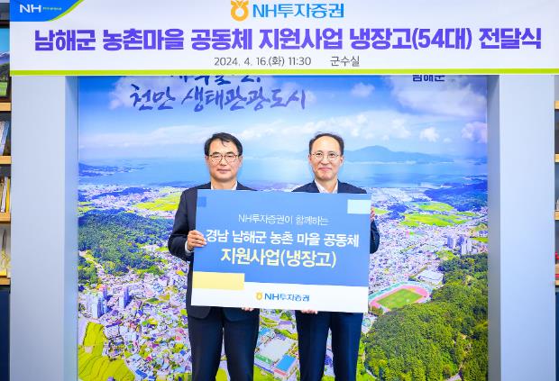 이날 냉장고 기탁식을 위해 남해군을 찾은 NH투자증권 김용기 부사장은 “NH투자증권은 다양한 사회공헌 사업을 지원하고 있으며, 그중 농촌마을 공동체 지원사업을 통하여 매년 6곳의 군 지부를 선정하여 냉장고를 기부하고 있다”며 “냉장고 기부를 통해 남해군민들에게 도움이 되었으면 하고, 앞으로도 농촌과 상생방안을 고민하며 사회에 긍정적인 영향력을 끼칠 수 있는 NH투자증권이 되도록 노력하겠다.”고 말했다.