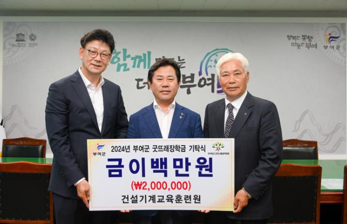 최병필 건설기계교육원 부원장은 “부여군과 협력을 통해 지역 사회에 기여할 수 있게 되어 기쁘다.”라며 “굿뜨래장학금을 통해 많은 학생들이 꿈을 이루는 데 도움이 되길 바란다.”라고 밝혔다.