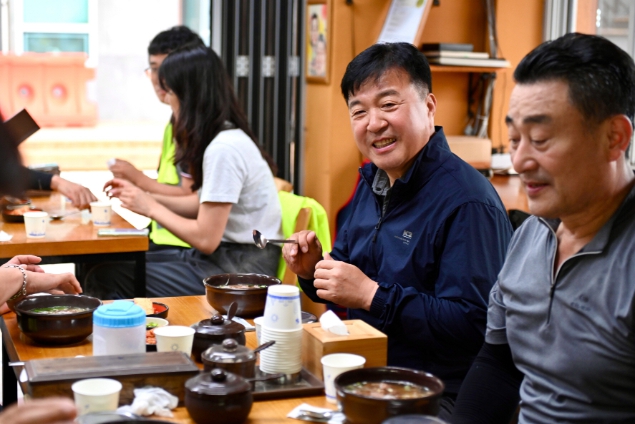 | ▲ 최재구 예산군수 민선8기 2주년 첫날 예산시장 청소 및 조찬간담회 모습 |