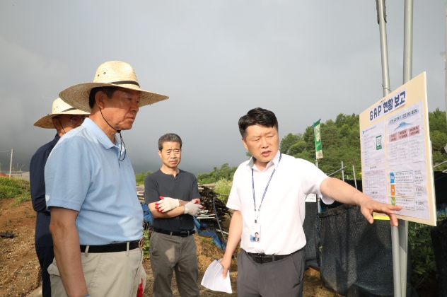 이날 박 군수는 현장을 살피고 농산물우수관리 인삼 생산 유통 활성화 및 애로사항에 관한 의견을 청취했으며 제초 작업 등 일손을 도왔다.