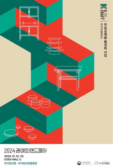 먼저, 국가유산청은 국가유산진흥원과 함께 국가무형유산 전승공예품 브랜드인 ‘케이 크래프트(K-CRAFT)’를 주제로 한 전시관을 운영한다.(12.13.~15.)