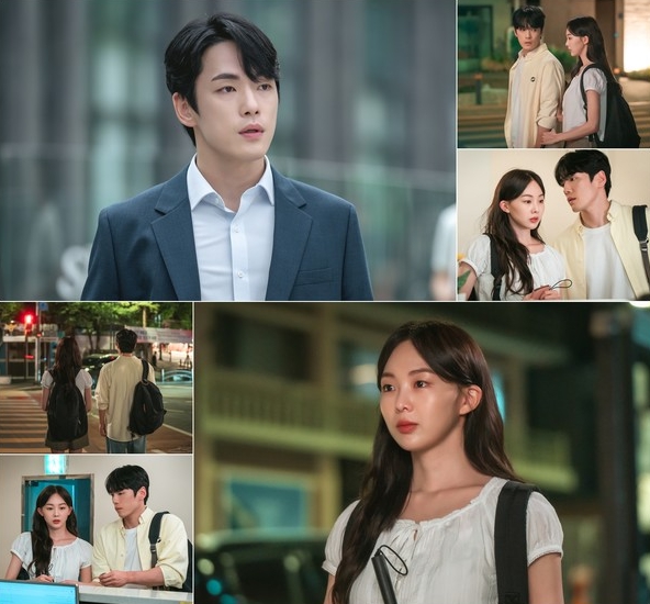 공개된 사진에는 서강주(김정현 분), 이다림(금새록 분)의 운명적 서사에 첫 단추가 담겨 있어 시선을 모은다. 횡단보도에서 강주를 마주친 다림은 지팡이가 아닌 그의 팔을 잡고 의지한다.