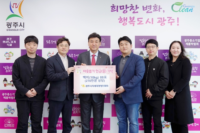 [뉴스서치] 광주시 차세대 경영인협회 이길영 회장은 지난달 29일 광주시청을 방문, 어려운 이웃들을 위해 사용해 달라며 백미 87포(10㎏, 270만원 상당)를 기탁했다.