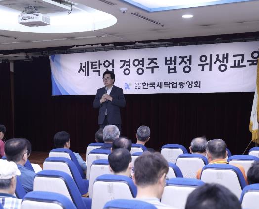 | ▲ 박일하 동작구청장이 지난달 9일 서울 동작구 상도동 동작문화복지센터에서 열린 ‘한국세탁업중앙회 동작구지부 세탁업 경영주 위생교육’에 참석해 인사말을 하고 있다 |