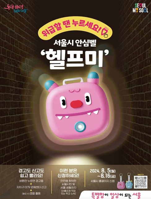‘헬프미’는 서울시가 이상동기범죄 등 무차별 범죄와 각종 위협으로 인한 시민들의 불안감을 달래고 시민 안전을 보호하기 위해 지원하는 호신용 안심벨이다. 가정폭력‧스토킹 등 범죄 피해자뿐 아니라 어르신, 청소년, 장애인 등 사회안전약자와 심야택시 운전기사, 재가요양보호사 등 범죄취약계층 누구나 대상이 된다.