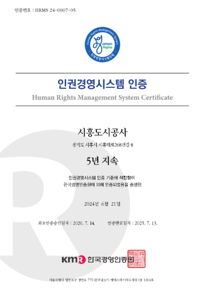 ▲ 시흥도시공사, 인권경영시스템 5년 연속 인증 획득 |