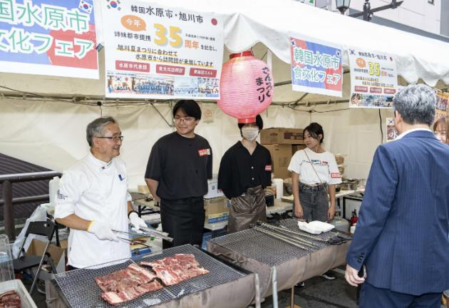 지난 8월 1~3일 일본 북해도를 대표하는 아사히카와시 여름 축제장에서는 한국의 전통무용과 사물놀이 공연과 함께 수원갈비와 수원왕갈비통닭 등 한식이 소개돼 눈길을 끌었다. 수원시와 아사히카와시의 자매결연 35주년을 기념하고 교류를 강화하기 위해 축제에 참가한 민간 대표들이었다. 수원시는 공무원 대표단 5명을 비롯해 총 24명을 아사히카와 여름 축제에 파견했다.