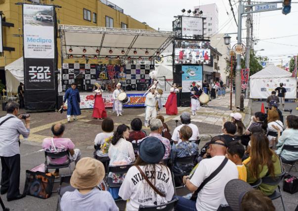 ▲ 지난 1~3일 아사히카와 교류협력 35주년을 기념해 수원시가 파견한 대표단 중 공연단이 풍물공연을 선보이고 있다. |