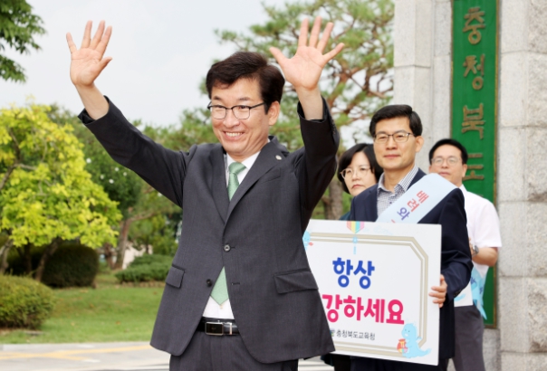 [뉴스서치] 윤건영 충청북도교육감은 2일 아침, 교육청 정문에서 출근하는 직원들을 대상으로 상호 존중과 청렴 홍보 캠페인을 진행하며 아침맞이 행사를 진행했다.