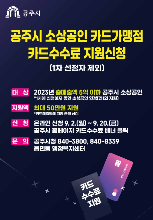 ▲ 공주시, ‘소상공인 카드수수료’ 최대 50만원 지원 |