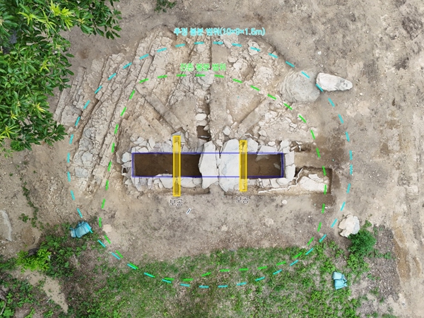우선 2호분에 대한 조사 결과, 길이 540㎝, 너비 100㎝, 높이 140㎝의 중소형 돌덧널무덤으로 유물은 대부분 도굴됐으나 금귀걸이 1쌍, 허리띠 장식(추정)과 함께 연대를 추정할 수 있는 뚜껑, 그릇받침 등의 아라가야 토기가 확인됐다.
