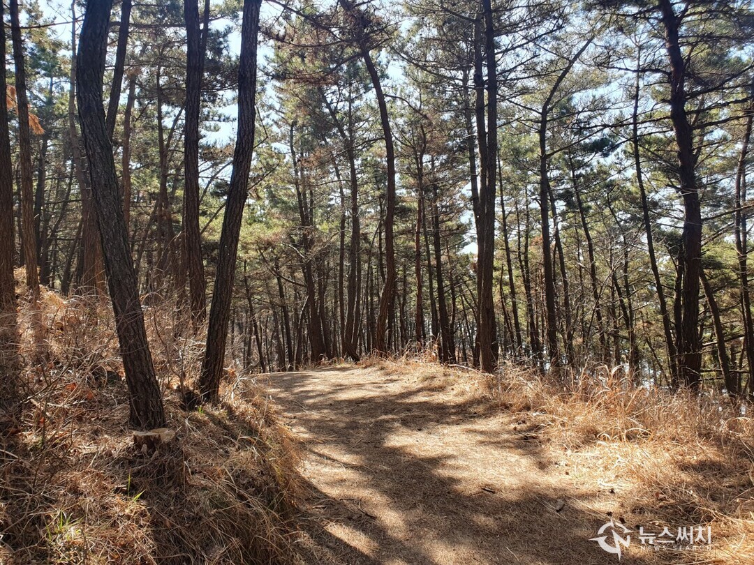 ‘능파사’를 뒤로 하고 트레킹을 계속하여 ‘양챙이’를 거쳐 나무데크로 단장된 길을 지나 해안숲길로 접어들었고 오전 11시 56분 ‘모재 쉼터’에 도착하였다. ‘모재 쉼터’는 제법 지대가 높아서 전망이 제법 괜찮았는데 기자는 쉼터에서 잠시 휴식을 취하면서 서해바다의 짠 공기를 들이마시며 예전 대학생 때 서해바다에서 느꼈던 추억을 곱씹었다.