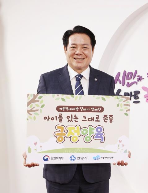 | ▲ 최대호 안양시장, ‘긍정양육’ 위한 아동학대 예방 릴레이 캠페인 참여 |