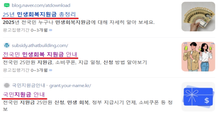 [뉴스서치] 최근 ‘민생회복지원금’ 신청‧안내 사이트로 위장해 이용자를 유료 서비스에 가입시키는 사례가 다수 발견돼 이용자 주의가 당부된다.