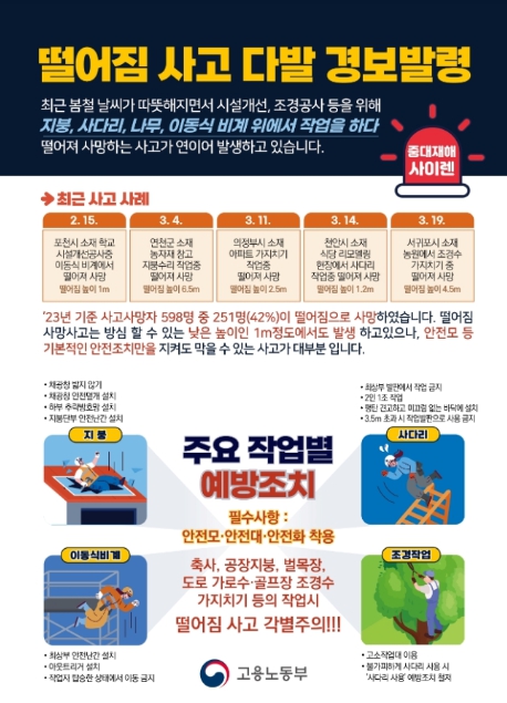 ▲ 「중대재해 사이렌」, 떨어짐 사망사고 위기 경보 발령 |