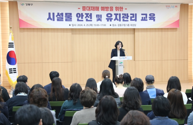 아울러 지난 25일에는 구 위탁 시설물인 관내 어린이집, 요양시설 등의 운영자 130명을 대상으로 중대재해 예방을 위한 시설물 안전 및 유지관리 교육을 실시했다. 이날 교육은 시설물 관련 주요 법령과 실제 시설물 관리에 주요한 분야인 건축, 소방, 전기, 가스 등의 관리 방법에 대한 설명으로 진행됐다.
