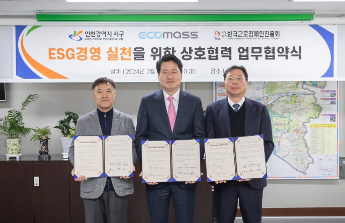 서구는 지난 13일 ㈜에코매스, (사)한국근로장애인진흥회와 상호협력 업무협약을 체결했다고 밝혔다.