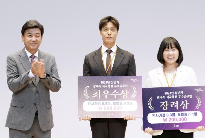 [뉴스서치] 광주시는 지난 2일 2024년 상반기 적극적인 업무 추진으로 시민 편의 증진과 시정 발전에 기여한 적극행정 우수공무원 3명을 시상했다.