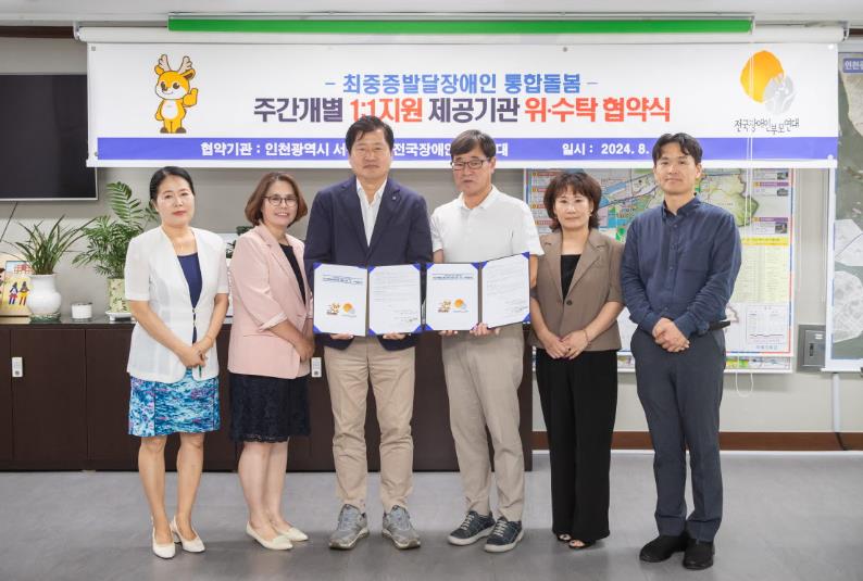 [뉴스서치] 인천 서구는 8월 6일 최중증 발달장애인 통합돌봄 주간개별일대일지원서비스 제공을 위해 (사)전국장애인부모연대와 협약을 체결했다.