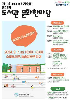 [뉴스서치] 인천시 남동구는 오는 7일 소래도서관과 늘솔길공원에서 ‘제10회 도서관 문화한마당(BOOK소리 축제)’를 개최한다고 4일 전했다.