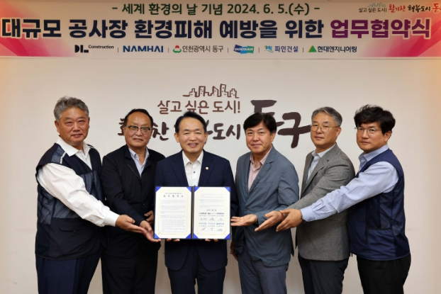 [뉴스서치] 인천 동구는 6월 5일 ‘세계 환경의 날’을 맞아 관내 대규모 공사를 진행하는 건설사들과 함께 소음·진동 및 비산먼지 예방을 위한 업무협약식을 개최하였다고 밝혔다.